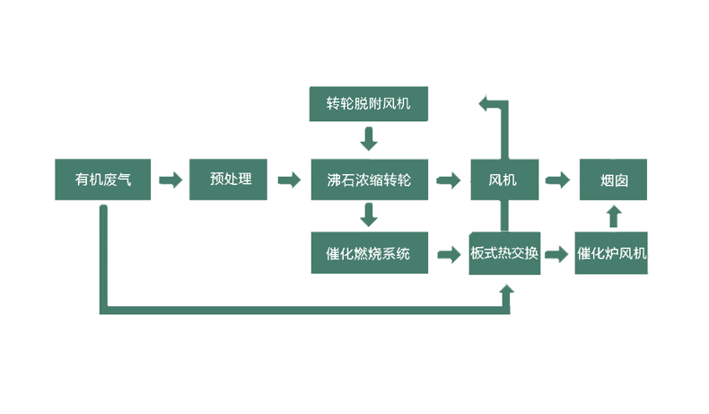 沸石轉輪+催化燃燒設備是針對目前vocs氣體種類繁多、性質各異、采用一種淨化技術往往難以達到排放要求而設計的新一代治理設備,該係統主要是將預處理單元、吸附濃縮單元有機地結合起來,是目前防治vocs氣體較為完善並且去除效率較高的一種有機黄瓜视频免费观看處理設備。