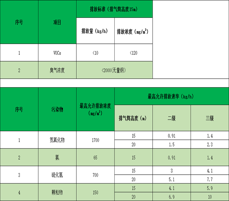 黄瓜视频免费观看排放標準執行《大氣汙染物綜合排放標準》(GB16297-1996)、《惡臭物質排放標準》(GB14554-93)二級標準,排放標準如下: